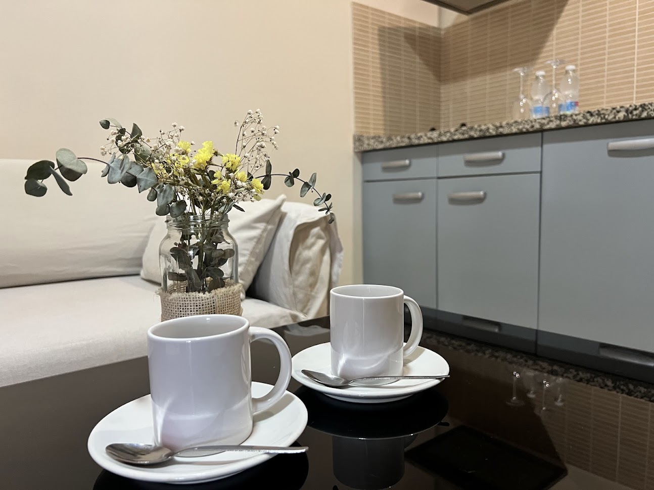 Estas habitaciones están divididas en dos habitáculos unidos por un pasillo, el primero es el salón que está equipado con sofá o cama supletoria (hasta dos), televisión, mesa y una cocina que incluye nevera, microondas y vitrocerámica.