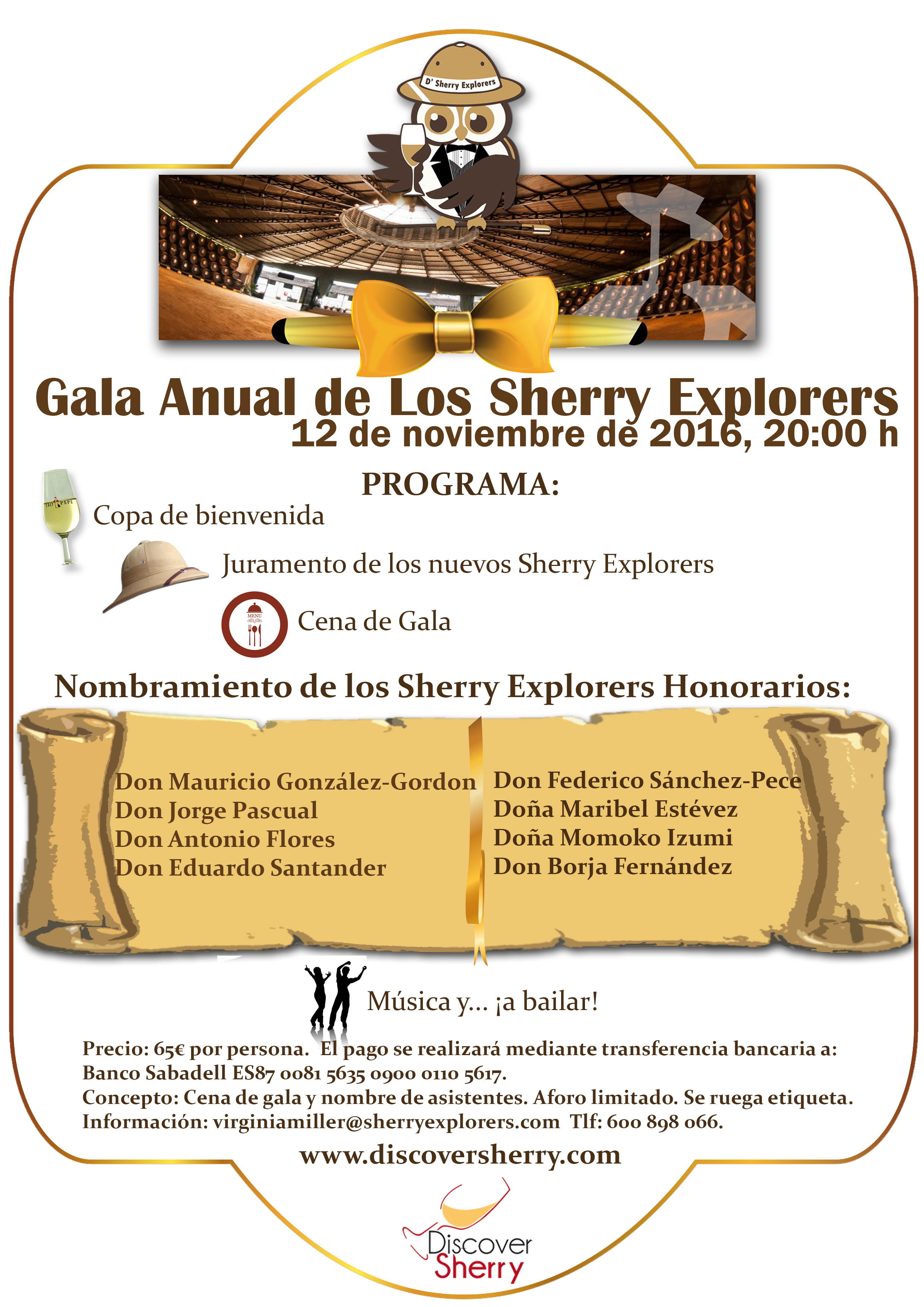 El próximo 12 de noviembre los Sherry Explorers celebramos la Gala Anual donde se nombrarán a nuevos Sherry Explorers Honorarios.