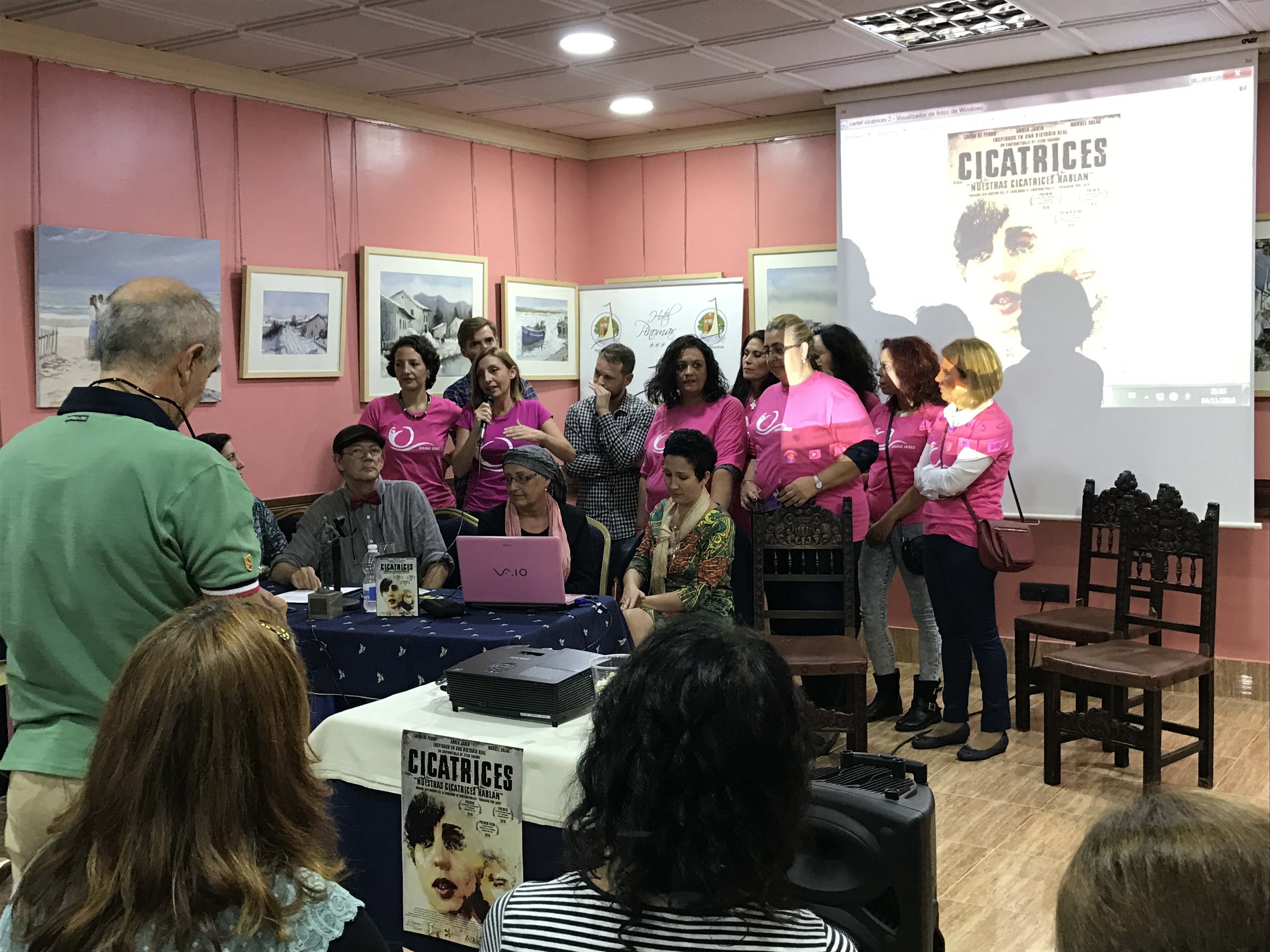 La Asociación de Mujeres Mastectomizadas de Jerez (AMMA Jerez) estuvo presente en el evento participando de un pequeño coloquio sobre uno de los temas tratados en el cortometraje que es el cáncer de mama.
