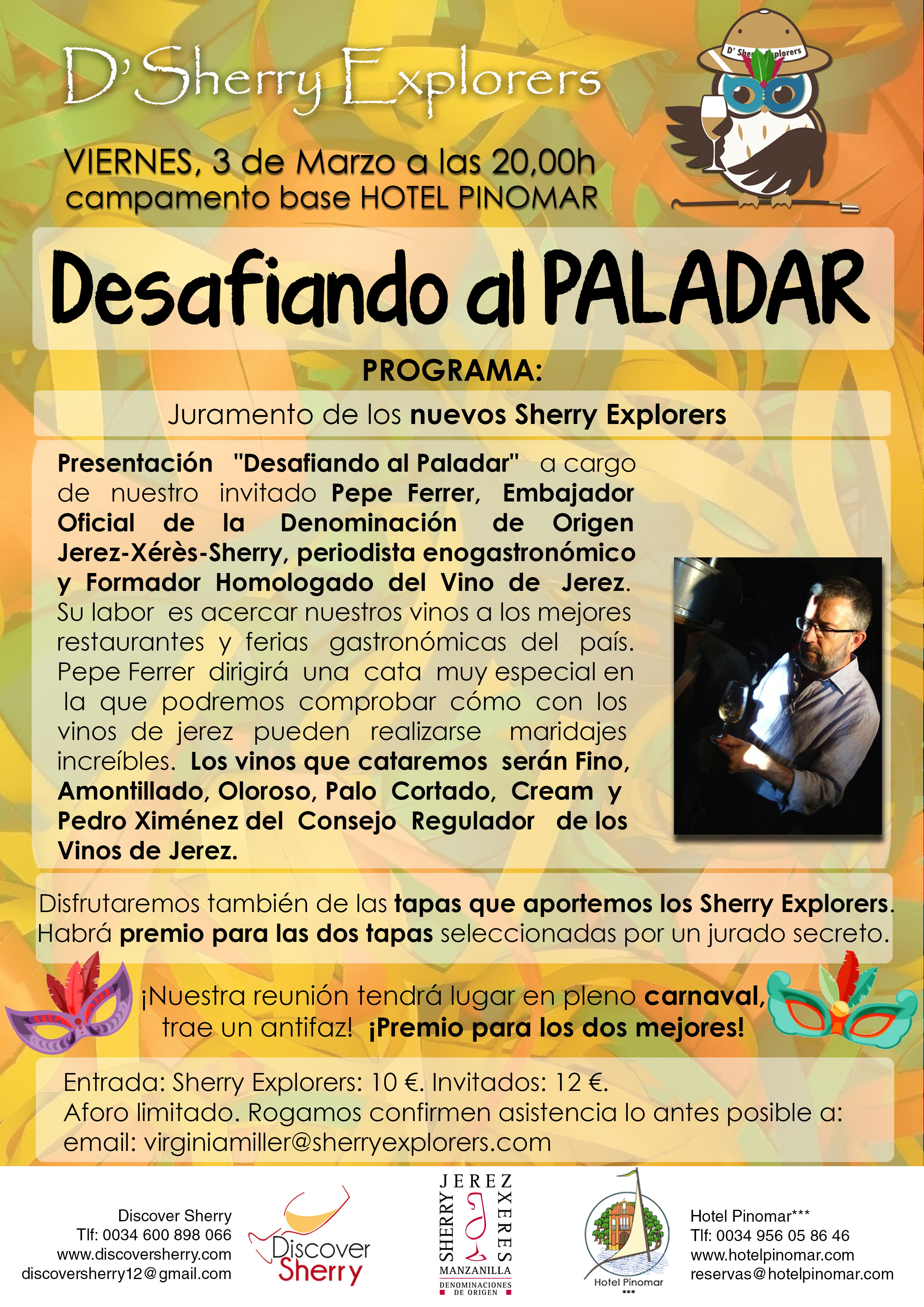 ¡El próximo viernes 3 de marzo tendremos un nuevo evento de los Sherry Explorers, «Desafiando al Paladar»! Con una oferta muy especial de alojamiento + entradas para todo aquel que quiera asistir.