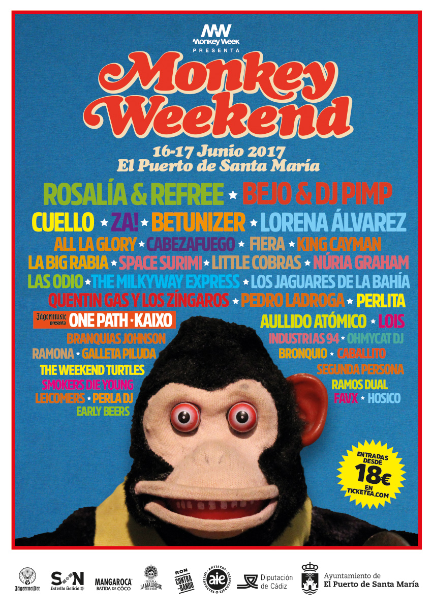 El Monkey Weekend se celebrará los próximos 16 y 17 de junio en El Puerto de Santa María, abandonando el carácter de feria profesional del festival de origen –que continuará con sus ediciones otoñales en Sevilla- pero apostando de nuevo por los valores emergentes de nuestra escena y la misma naturaleza urbana de siempre.