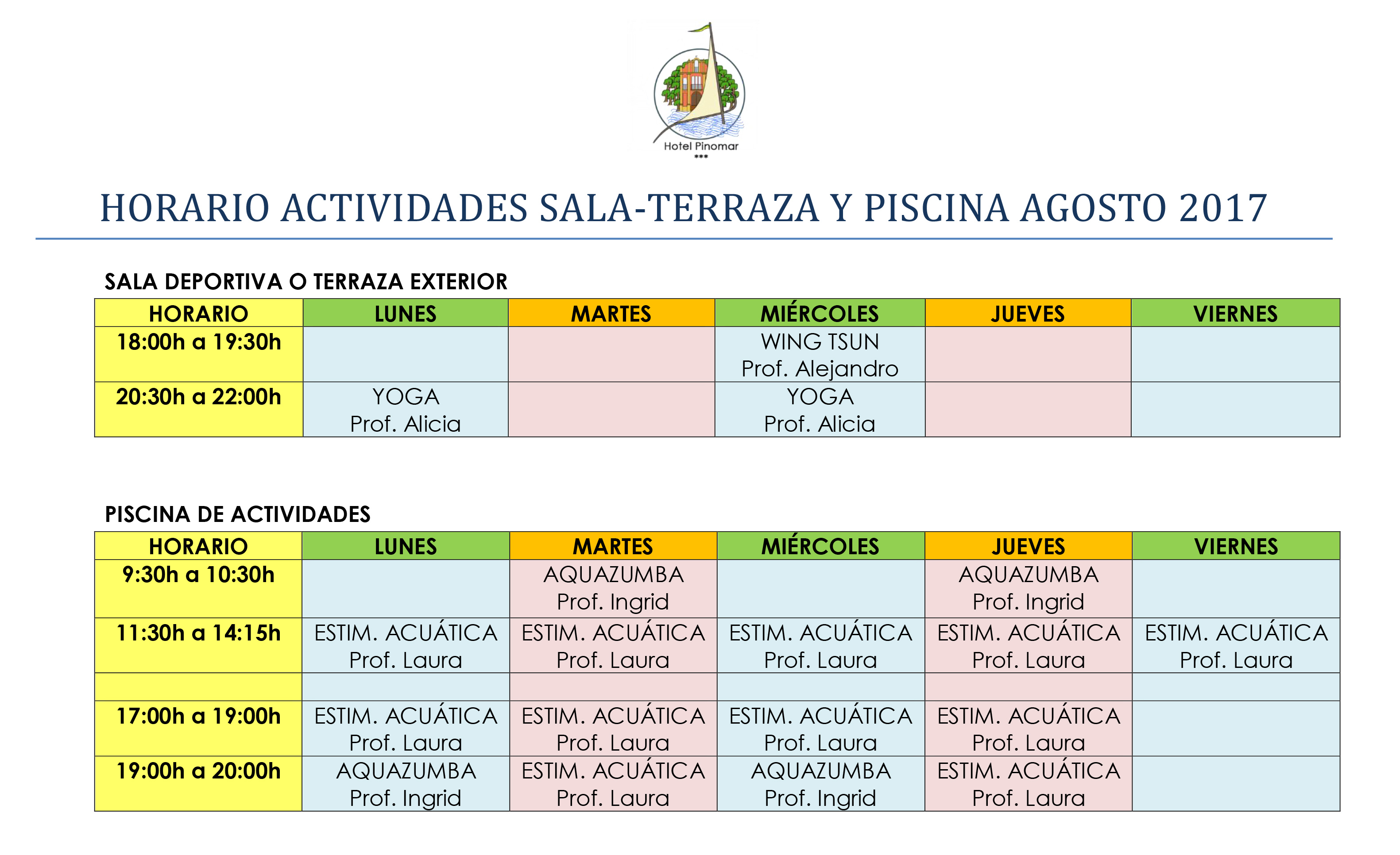 Horario actividades deportivas agosto