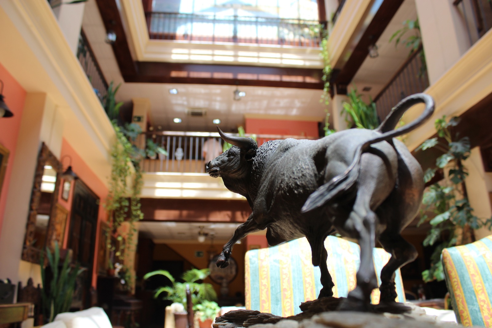 El ambiente de los alrededores de la plaza horas previas a la corrida es muy típico en nuestra ciudad. Los aficionados se reúnen a comentar lo que deparará el festejo en las bodegas y en la ribera del río. Pero el mejor sitio para ir empapándote del embrujo y del arte de nuestra tierra es La Capilla. Nuestra cafetería en la planta baja te ofrece todo lo que necesites para poder disfrutar de una tertulia taurina rodeados de cuadros y esculturas dedicadas al noble mundo del toro.