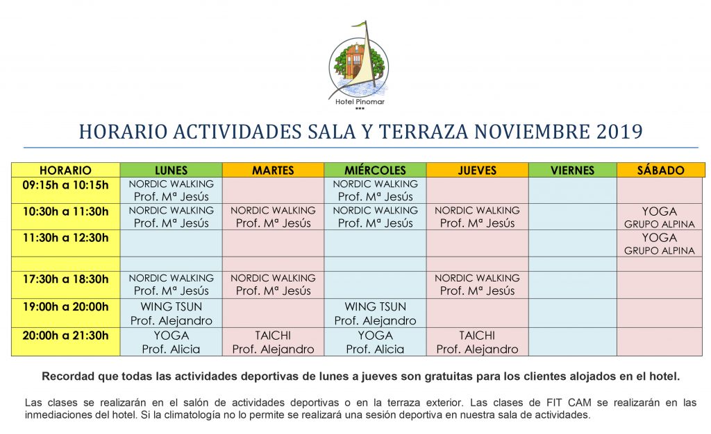 Y también el horario de las actividades deportivas que podrás disfrutar durante todo el mes en nuestro Centro de Bienestar.