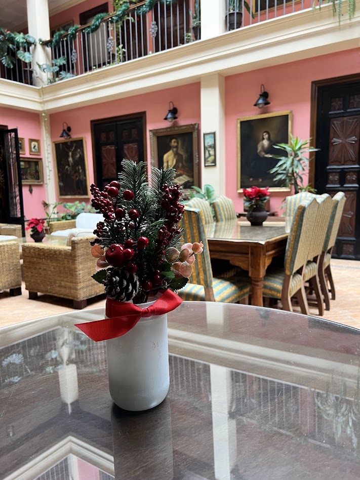 Este año hemos preparado una decoración que combina tradición y detalles artesanales. Desde el árbol principal en recepción —que recibe a cada huésped con un destello especial— hasta los rincones más tranquilos de nuestros salones, todo ha sido diseñado para transmitir la serenidad y la magia propias de estas fiestas.