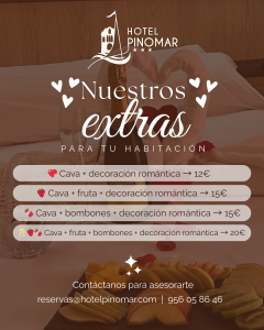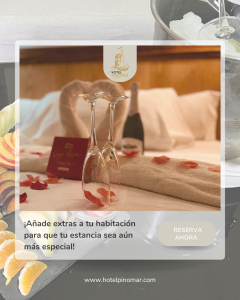 ¿Buscas sorprender a tu pareja durante tu estancia en Hotel Pinomar?Te lo ponemos muy fácil con nuestros exclusivos extras románticos, diseñados para crear momentos inolvidables. Reserva uno de estos detalles